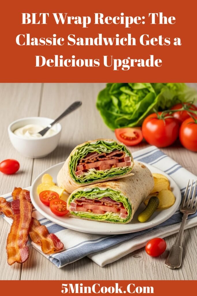 The BLT wrap is a brilliant reimagining of the beloved classic BLT sandwich, taking all those iconic flavors—crispy bacon, fresh lettuce, juicy tomatoes, and creamy mayo—and wrapping them up in a soft, portable tortilla! This modern twist on an American favorite combines the satisfying crunch and savory-fresh flavor profile we all love with the convenience of a handheld wrap that’s perfect for eating on the go. The combination of smoky bacon, crisp vegetables, and creamy spread creates an irresistible taste experience that’s both comforting and refreshing. This easy BLT wrap is perfect for countless occasions: pack it for work lunches where you need something that travels well and stays fresh, make it for quick weeknight dinners when you don’t want to fuss over complicated recipes, prepare it for casual gatherings where guests can grab and eat easily, enjoy it as a summer lunch that doesn’t require hot cooking, create it for meal prep Sundays to have grab-and-go lunches ready, or whip it up when you’re craving classic comfort food with a convenient twist. The beauty of this BLT wrap for lunch lies in its perfect balance—it’s substantial enough to keep you satisfied for hours, fresh enough that you won’t feel weighed down, simple enough that anyone can make it, and comes together in just 15 minutes from start to finish. Whether you’re a busy professional seeking better lunch options, a parent packing school lunches, someone who loves classic American flavors, or simply a wrap enthusiast looking for the perfect combination of taste and convenience, this classic BLT wrap recipe delivers incredible flavor, satisfying crunch, and pure deliciousness in every single bite!