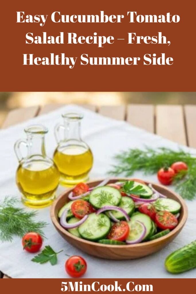If there’s one dish that instantly says “summer,” it’s this Cucumber Tomato Salad Recipe. Crisp cucumbers, juicy tomatoes, thinly sliced onions, and a light homemade dressing come together in a bowl of pure freshness. It’s simple, vibrant, and exactly the kind of recipe Pinterest home cooks love—quick to make, budget-friendly, and perfect for gatherings.
