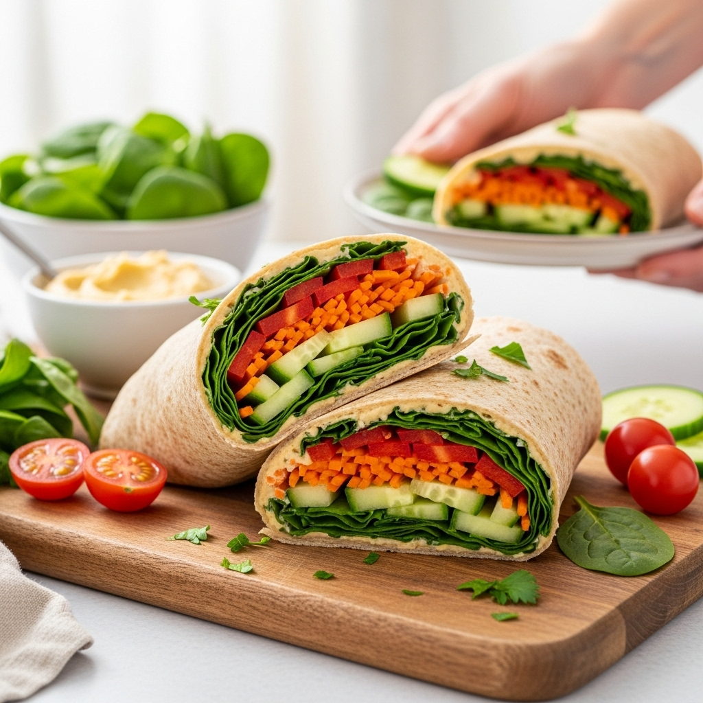 Fall Harvest Wrap: Swap some vegetables for roasted sweet potato cubes, add dried cranberries, chopped apples, and use butternut squash hummus if you can find it. This seasonal variation is perfect for autumn lunches.